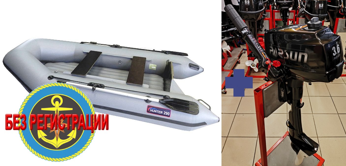 Мы осуществляем продажу надувных лодок из ПВХ Хантер 290ЛН во все регионы России и ближнего зарубежья, доставка по Москве и ближайшему Подмосковью - бесплатно! Возможна продажа в кредит ПВХ лодок Hunter 290 ЛН! Купить лодочный мотор Parsun TC 3.6 BMS. Мы осуществляем продажу и доставку лодочных моторов Parsun TC3.6BMS во все регионы России, доставка по Москве и ближайшему Подмосковью – бесплатно. Также Вы можете купить лодочный мотор Парсун 3.6 в кредит.